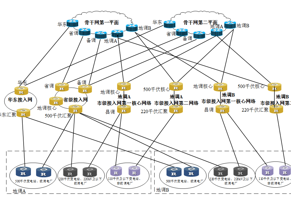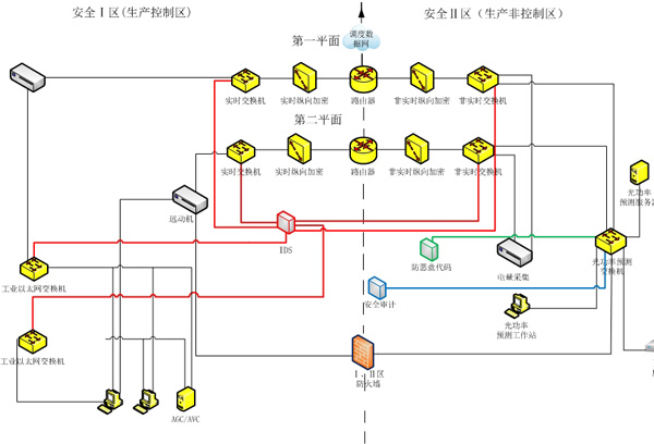 公司的電力調(diào)度數(shù)據(jù)集成方案采用省、市、縣三級結(jié)構(gòu)和雙平面部署,并分為調(diào)度主站和變電站子站建設(shè)。其中,路由交換設(shè)備負(fù)責(zé)匯聚、分發(fā)和管理數(shù)據(jù);防火墻、縱向加密、橫向隔離等設(shè)備保障網(wǎng)絡(luò)邊界安全;網(wǎng)絡(luò)安全監(jiān)測裝置、入侵檢測、防惡意代碼等設(shè)備保障內(nèi)部數(shù)據(jù)安全。